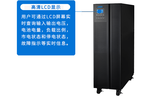 用戶可通過LCD屏幕實時查詢輸入輸出電壓,電池電量,負載比例,市電狀態和停電狀態,故障指示等實時信息。